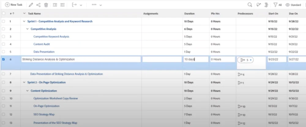The project planning process can be a guessing game, so the predecessor feature helps when you need to change the dates without having to manually change the start or due date of each task. You can keep that workflow consistent and on track.
