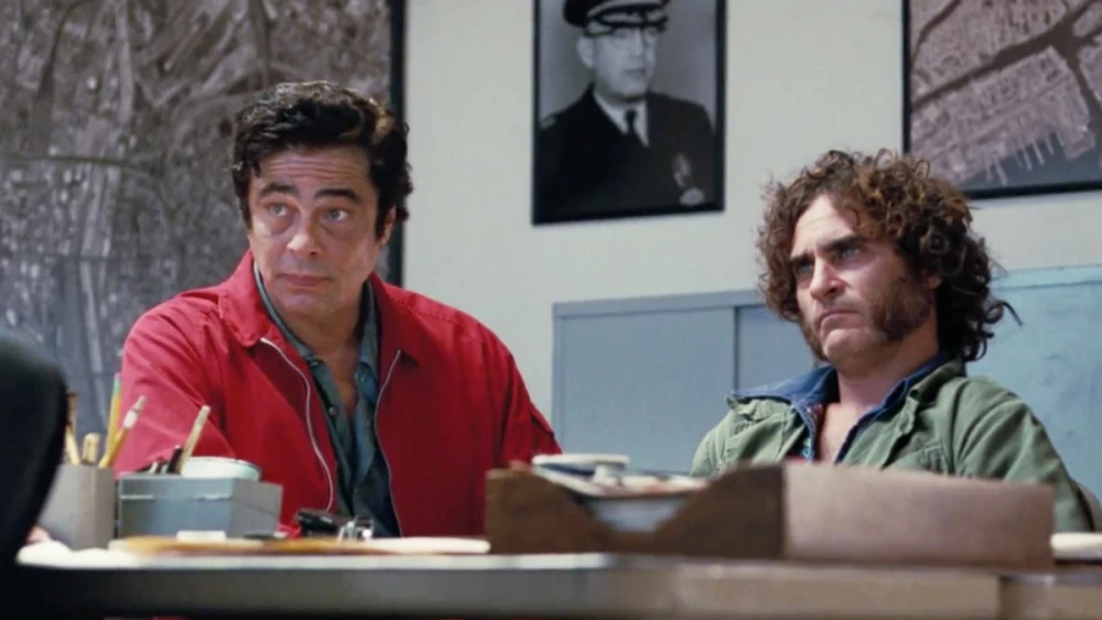 The movie Inherent Vice. It's one of Joaquin Phoenix's stranger performances.