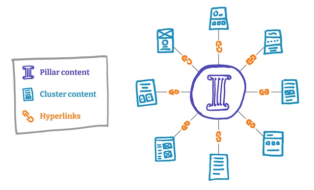 A content pillar should work like a continually weaving spiderweb; in the beginning, you create the content pillar which is at the center of all the content that stems from it. They all connect by the internal links to subtopic content you provide in the pillar text.